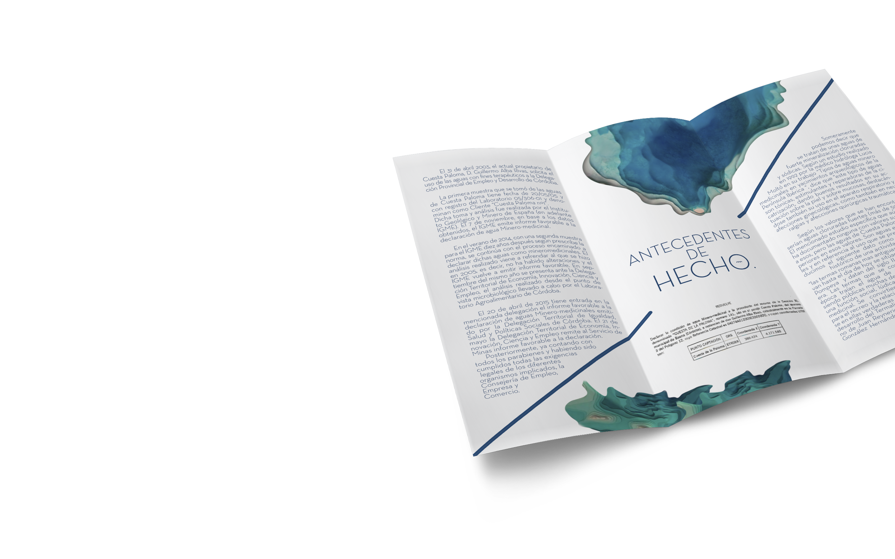 El proyecto consiste en la realización del material publicitario e informativo referente a la serie de conferencias celebradas en torno a las aguas mineromedicinales, una iniciativa para poner en valor las propiedades curativas de diversas aguas subterráneas presentes en Andalucía. Consta de una campaña informativa realizada a través de cartelería impresa, su adaptación a redes sociales y mailing y la maquetación de varios trípticos informativos y publicitarios.