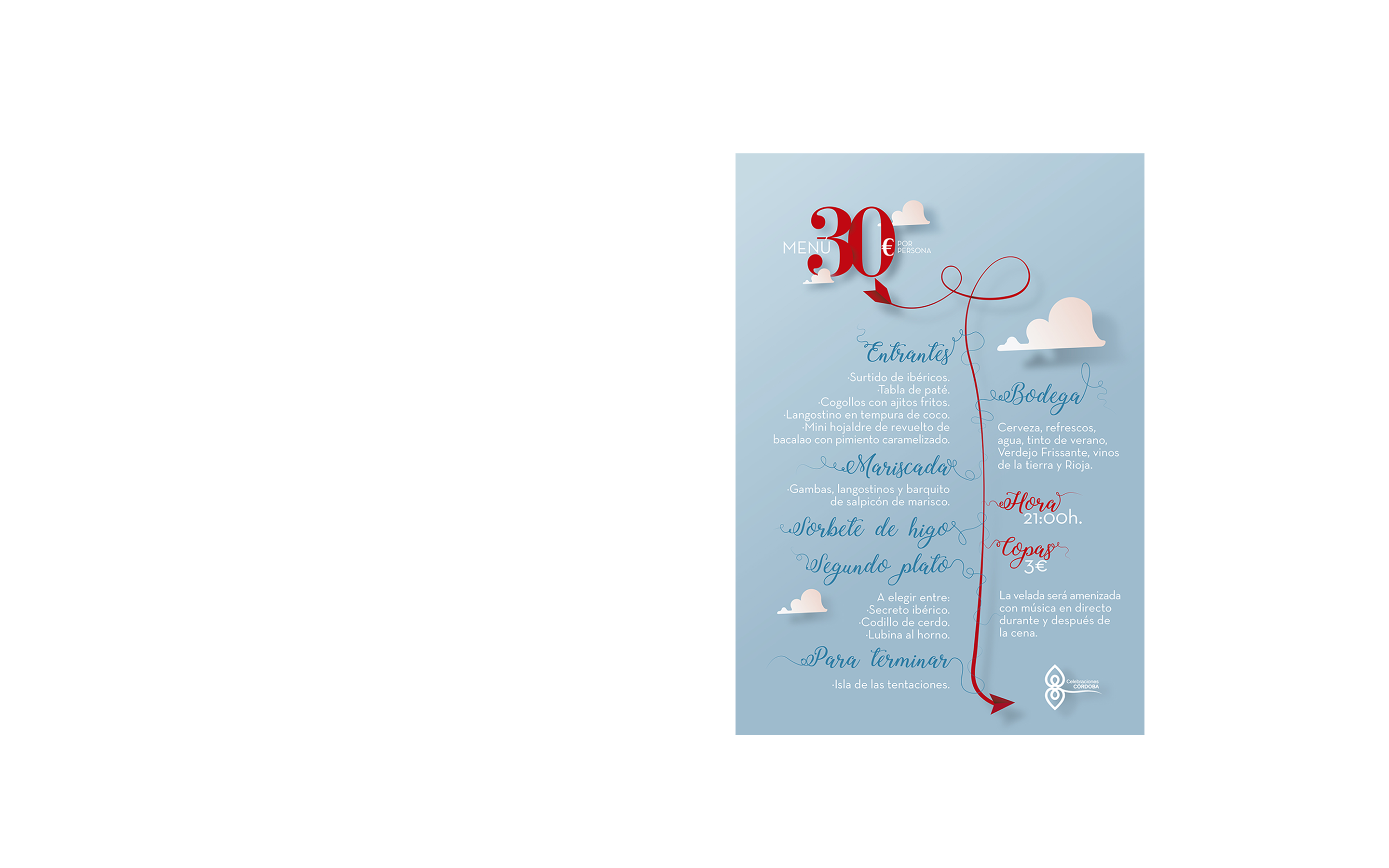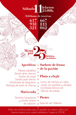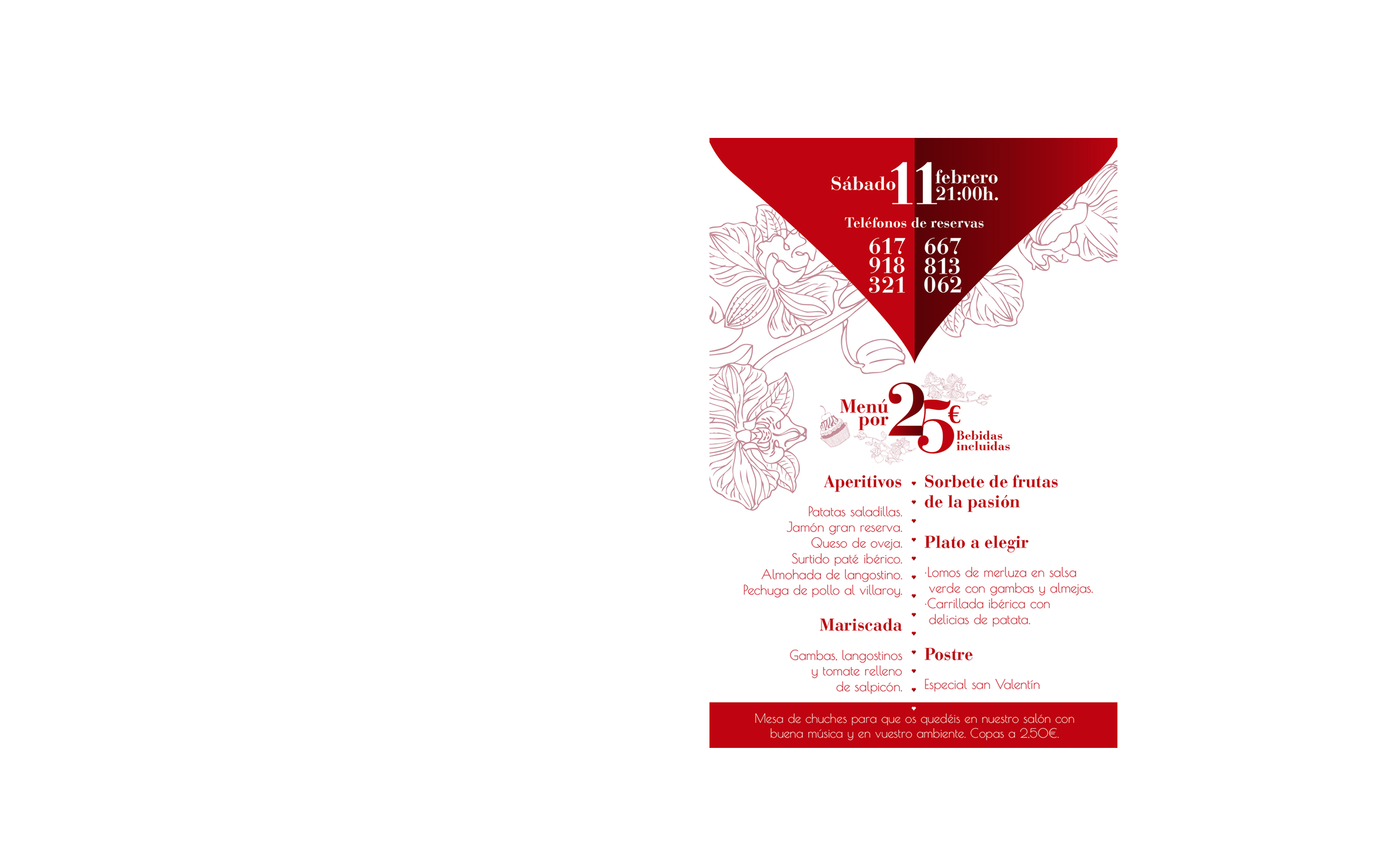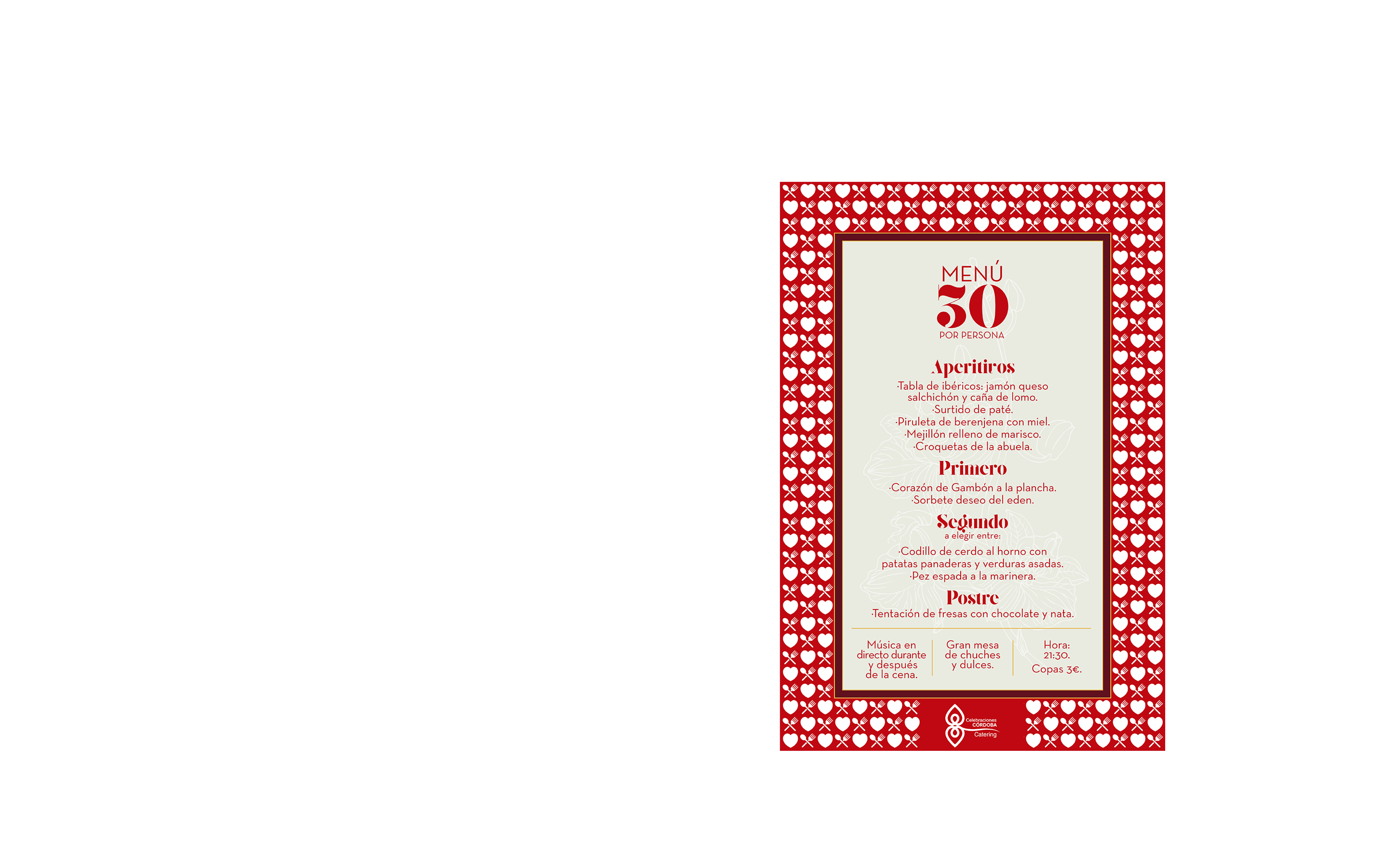 Los Salones de Celebraciones Córdoba organizan todos los años con motivo del día de San Valentín una cena muy especial en sus instalaciones, con decoración, música y menús especialmente elegidos y pensado para el romántico día. El proyecto anual consiste en la creación de cartelería publicitaria, su adaptación a redes sociales y la maquetación del menú. A consecuencia de la pandemia del COVID-19 se suspendió la actividad presencial, por lo que en 2021 la cena se sirvió a domicilio, creando un precedente interesante para futuros años.